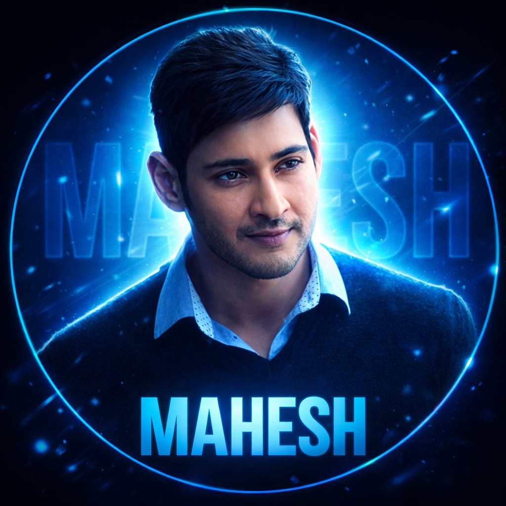 PROMPT:- Use uploaded photo as exact face (identity lock). High-detail aesthetic circular profile DP, blue neon color grade, cinematic lighting, soft glow, smooth retouch, sharp face focus. Blue blurred background with light streaks/particles. Large transparent “MAHESH” text behind subject, bold texture “MAHESH” text at bottom, halo light behind head, high contrast, ultra-realistic, 4K, centered, pro color grade.