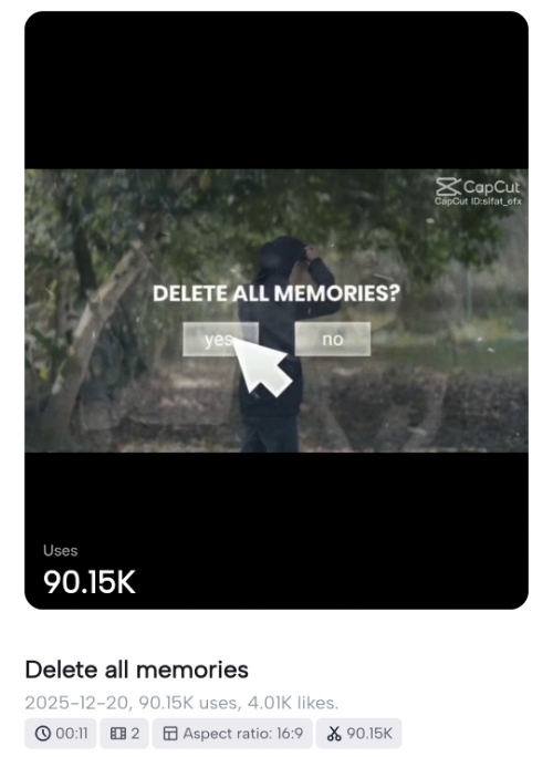 Why is it Trending?The popularity of this template lies in its emotional appeal. Social media thrives on relatability, and the idea of “deleting memories” resonates with many users who want to express heartbreak, nostalgia, or personal growth. Combined with the right song, the template transforms simple clips into powerful storytelling reels.Reasons for its trend:Emotional connection: People love content that reflects their feelings.Virality factor: The template is widely shared, encouraging more creators to try it.Aesthetic appeal: The visuals are polished and cinematic, making reels stand out.Ease of replication: Anyone can use the template without advanced editing knowledge.